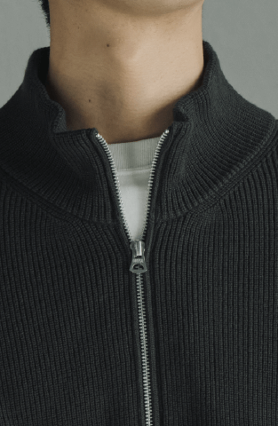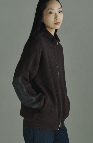 Chunky ribbed elbow patch zip-up blouson