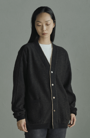 felted wool-cotton V-neck cardigan